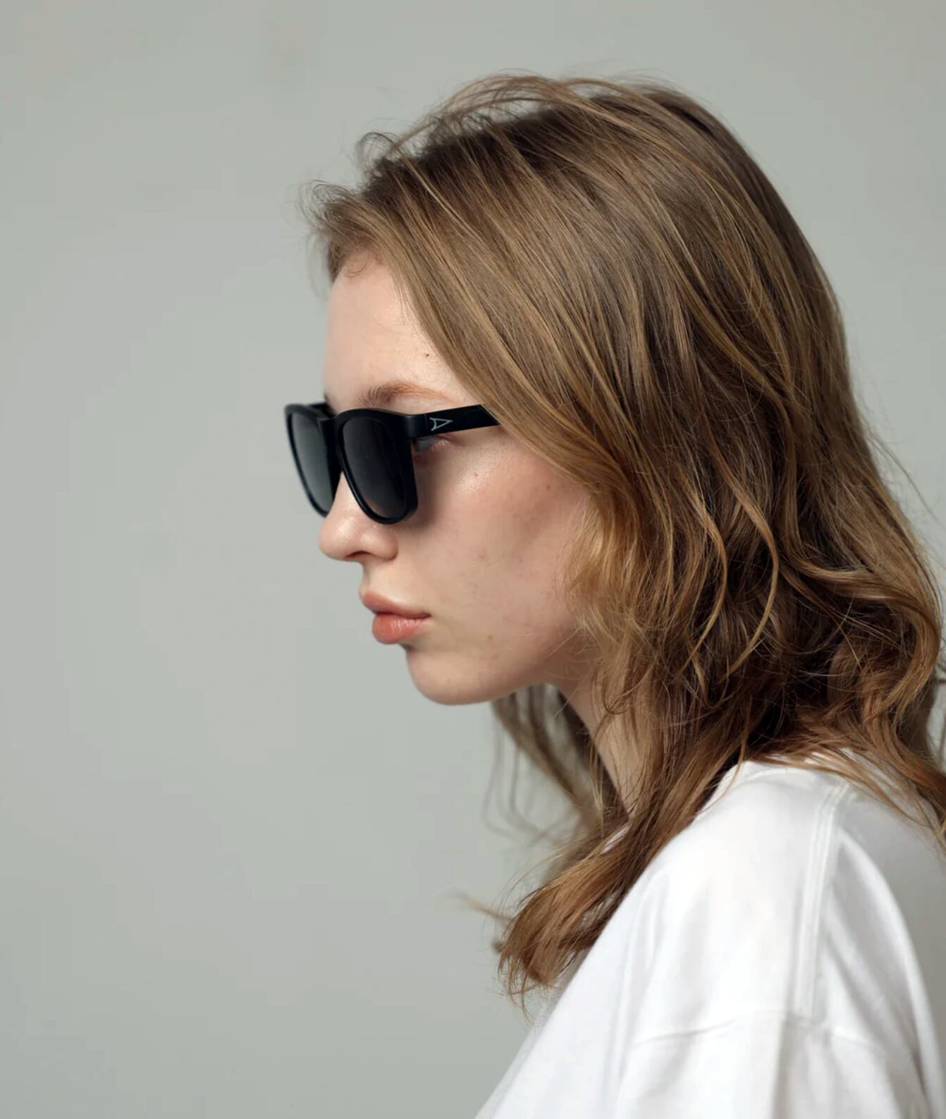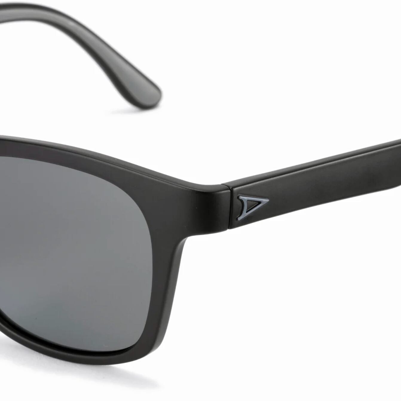 サングラスの定番、ウェリントンタイプのシェイプ。しっかりとしたサイズ感とボリューム感を持ちながら、全体のシルエットはスマートで力強い印象に仕上げられています。フレームはマットブラック、レンズは反射光をカットし視界をクリアに見やすくする偏光レンズ。